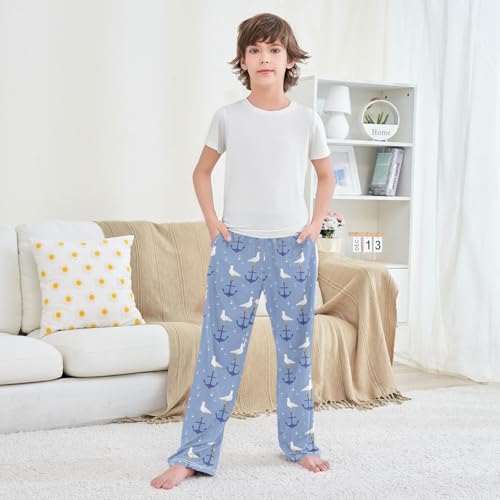 ALAZA Anchor Seagull Blue Cartoon Pajama Lounge Pants Long Sleep Pajama Bottoms with Pockets 1