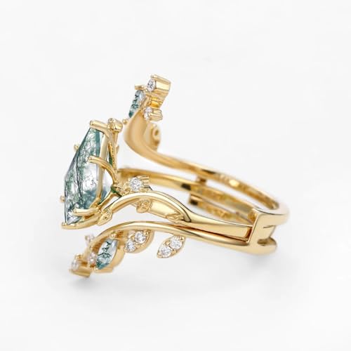 1.5CT Natural Moss Agate Wedding Ring Set for Women S925/10K/14K/18K Gold Moss Agate Bridal Ring Set Vintage Engagement Ring Set for Wife Bridal 7