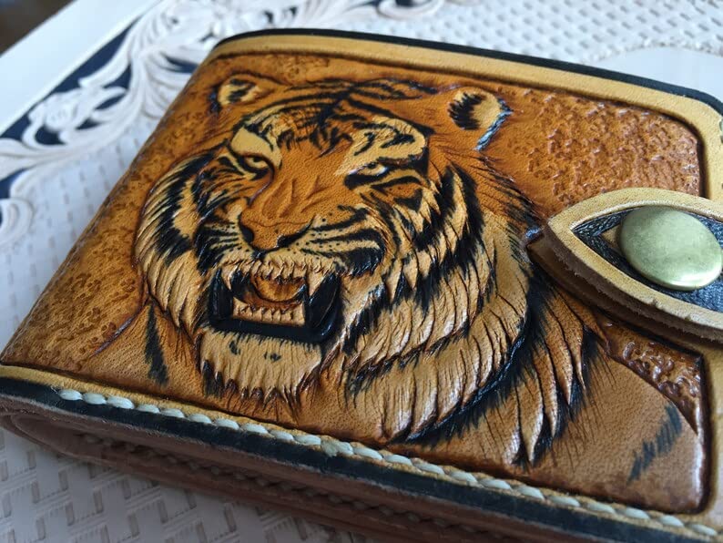 More information about Tiger, Men's 3D Genuine Leather Wallet, Handmade wallet, Carved wallet, Tooled wallet, Airbrush Art, Bifold wallet, Custom wallet, Personalized wallet