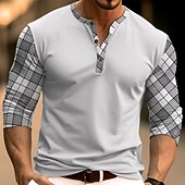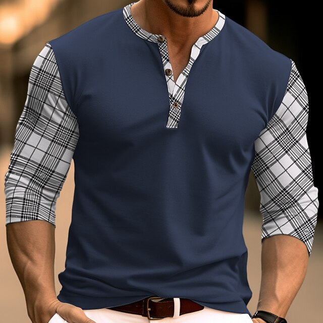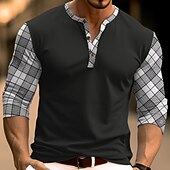 More information about Men's Button T Shirt T Shirt Henley Shirt Tee Top Long Sleeve Henley Spring & Fall Plaid Color Block Fashion Designer Basic Patchwork Vacation Street Going out Black Navy Blue Brown Top Tee for Men