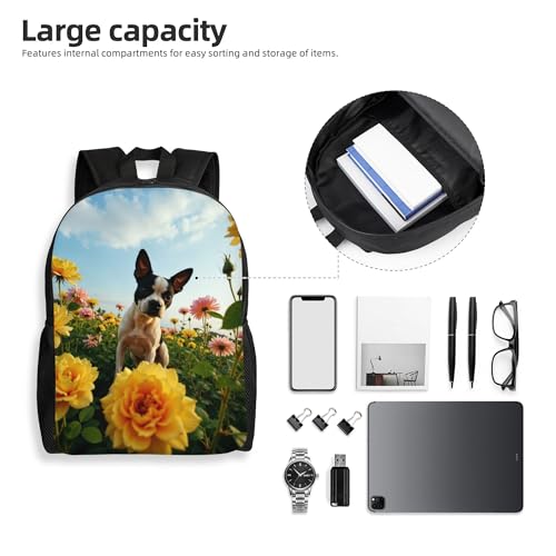 Travel Backpack for Women & Men Dog Field Flowers Sky Lightweight, Large Capacity Backpack For Adult 16 Inch 4