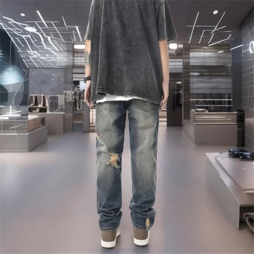 HOT ! Men's Summer Jeans Distressed Straight Leg Versatile Casual Trousers