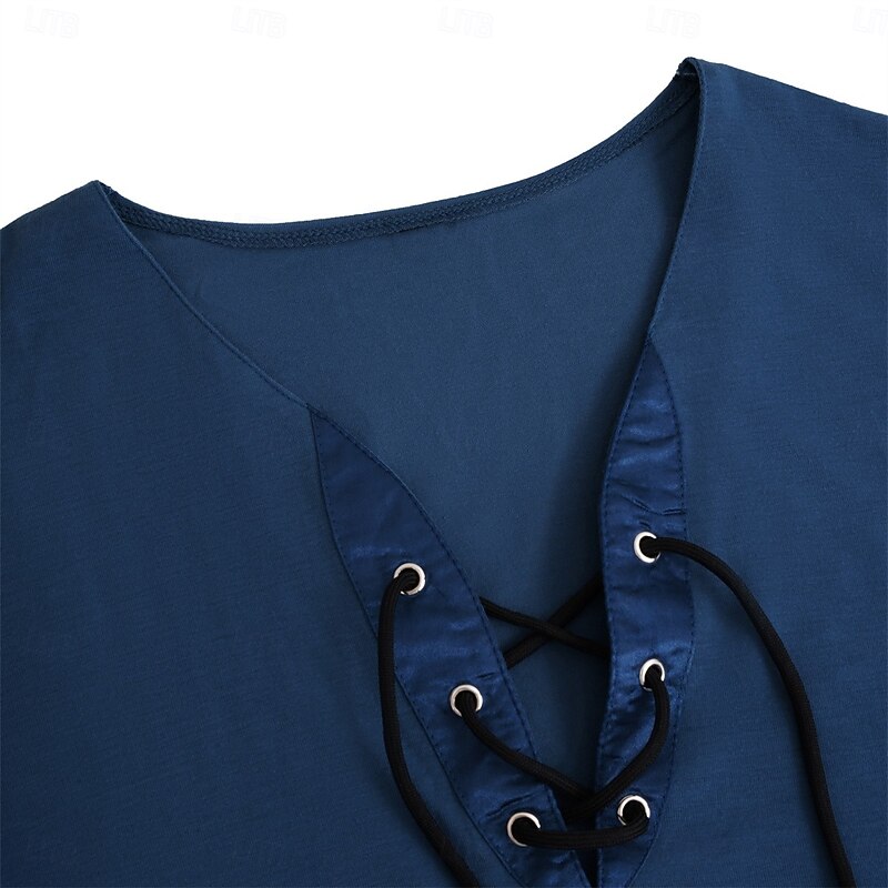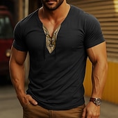 More information about Men's T Shirt Henley Shirt Tee Top Short Sleeve V Neck Summer Spring & Summer Plain Fashion Designer Basic Lace up Vacation Street Casual Dark Gray Black Navy Blue Top Tee for Men