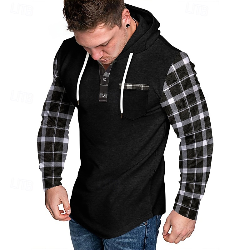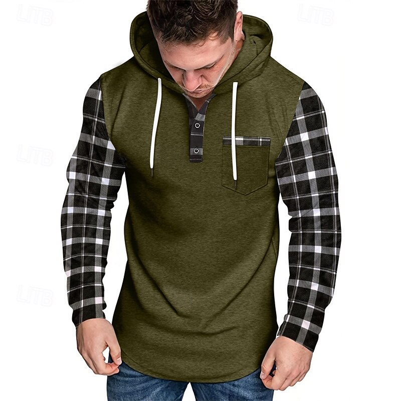 More information about Men's Hoodie Black Army Green Navy Blue Khaki Light Grey Hooded Plaid Color Block Pocket Sports & Outdoor Daily Holiday Polyester Streetwear Basic Casual Spring & Fall Clothing Apparel Hoodies
