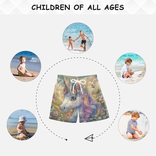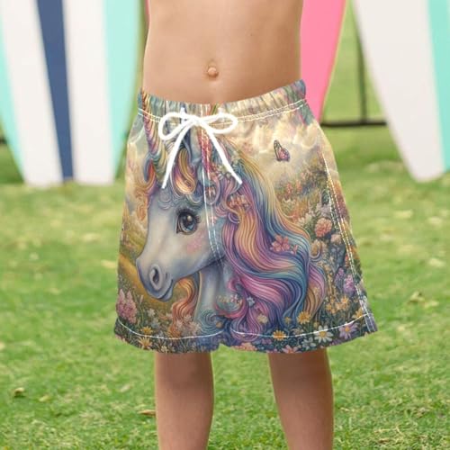 Pigsaly Boys Swim Trunks Unicorn Rainbow Roses Boys Board Shorts Swimsuit Swimwear Summer Bathing Suit S 6