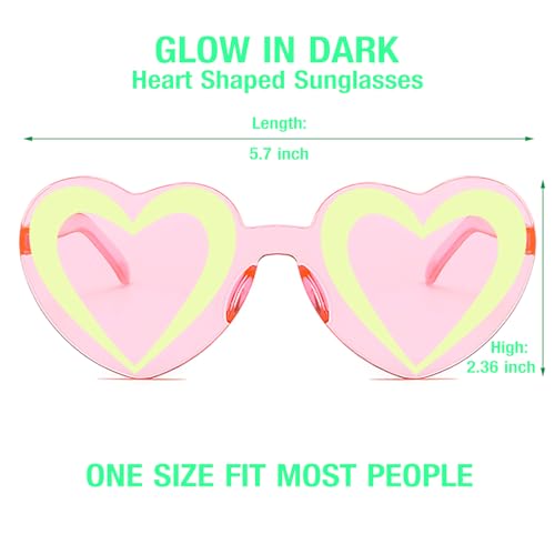 Heart Shaped Rimless Sunglasses, Jelly Fudge Series Bachelor Party Cool Sunglasses 8 Pack, Colors Funky Glasses Party Favors (Glow in Dark) 4