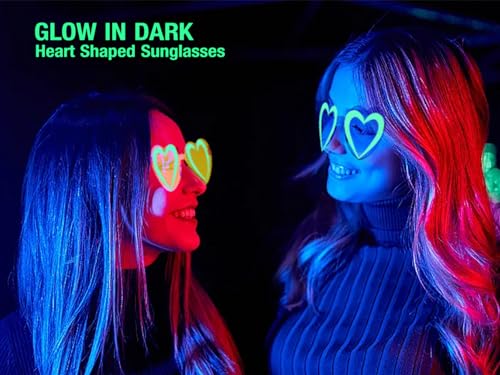 Heart Shaped Rimless Sunglasses, Jelly Fudge Series Bachelor Party Cool Sunglasses 8 Pack, Colors Funky Glasses Party Favors (Glow in Dark) 1