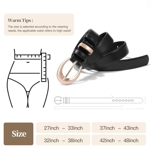 • 【Matching & Occasions】The ladies western thin belt can be worn with many different outfits, you add one of these vintage belts for women to pretty much any outfit, it will instantly elevate your outfit and add a touch of vintage and style to your overall look. The women leather belt with gold buckle not only goes with your daily casual clothes, but also works for Halloween cosplay, music festivals, carnivals, beach seashores, birthday parties, and more