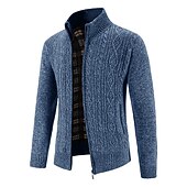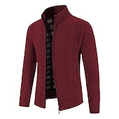 More information about Men's Cardigan Sweater Cropped Sweater Ribbed Knit Regular Knitted Hooded Warm Ups Modern Contemporary Daily Wear Going out Clothing Apparel Fall & Winter Wine Red Blue M L XL