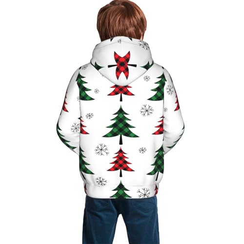 Buffalo Plaid Christmas Trees Kids Pullover Hoodies Boys Sweatshirts Girls Athletic Clothes with Pocket 7