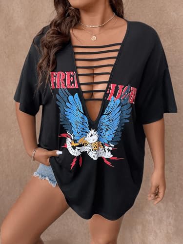 SOLY HUX Women's Plus Size Letter Graphic Tees Cut Out Deep V Neck Half Sleeve T Shirts Tops 5