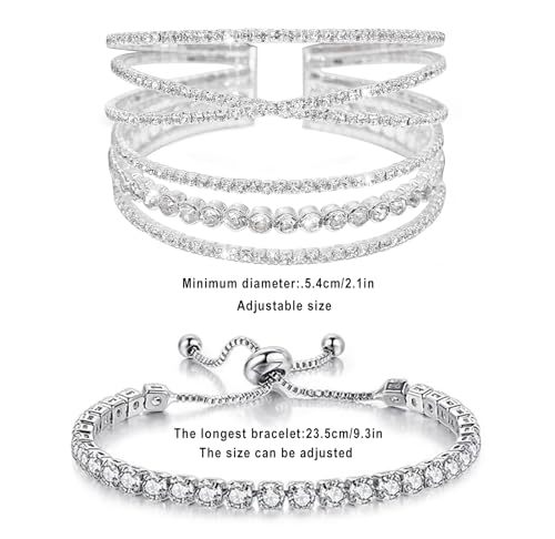 • Crystal Bracelet Sets: Package includes 2 different rhinestone bracelets classical design, sparkling rhinestone Inlaid make these bracelets exquisite and elegant, the bracelet which can be worn alone or together beautiful accessories to match with different clothing, makes you look elegant and glamorous for any occasion.