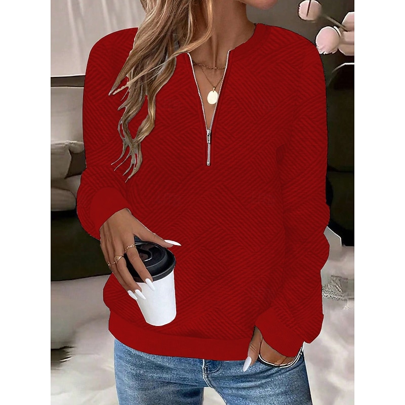 More information about Women's Texture Sweatshirt Quarter Zip Sweater Casual Plain Street Dailywear Crew Neck Zipper Long Sleeve Black White Red Gray Fall Winter