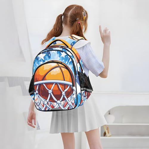 HOT ! Cartoon Basketball Hoop Star School Backpack for Boys Kid's Backpack Light Weight Bookbags Elementary High School Water Resistant Laptop Bags Men Travel Daypacks,15.3" H