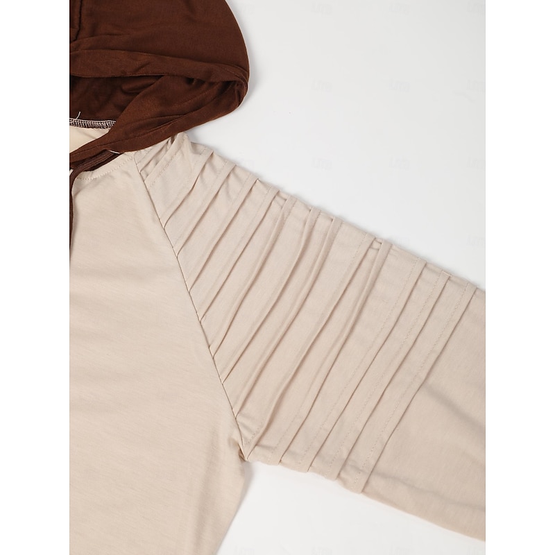 Men's T Shirt Tee Top Long Sleeve Shirt Long Sleeve Hooded Spring &  Fall Color Block Slim Pleated Fashion Designer Basic Lace up Patchwork Vacation Street Going out Black Army Green Beige Top Tee 7