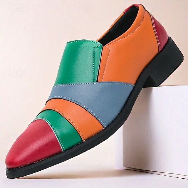 More information about Men's Multicolor Patchwork Slip-On Dress Shoes – Bold Vintage-Inspired Loafers for Parties, Stage Performances & Fashion Events