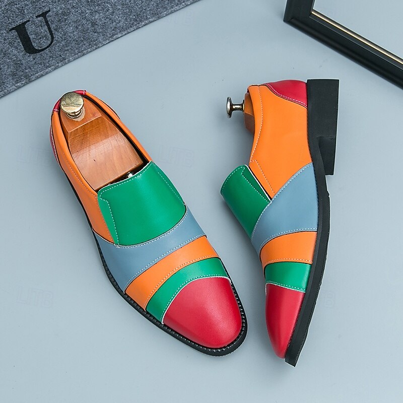 HOT ! Men's Multicolor Patchwork Slip-On Dress Shoes – Bold Vintage-Inspired Loafers for Parties, Stage Performances & Fashion Events