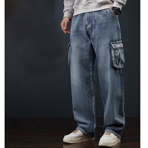 More information about Men Loose Cargo Jean with Multi Pockets Straight Wide Leg Jean Casual Baggy Pants 28-44