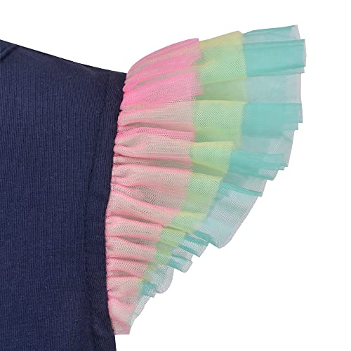 Sunny Fashion Girls Dress Blue T-Shirt Pocket Embroidery Butterfly Tulle Flutter Sleeve 6