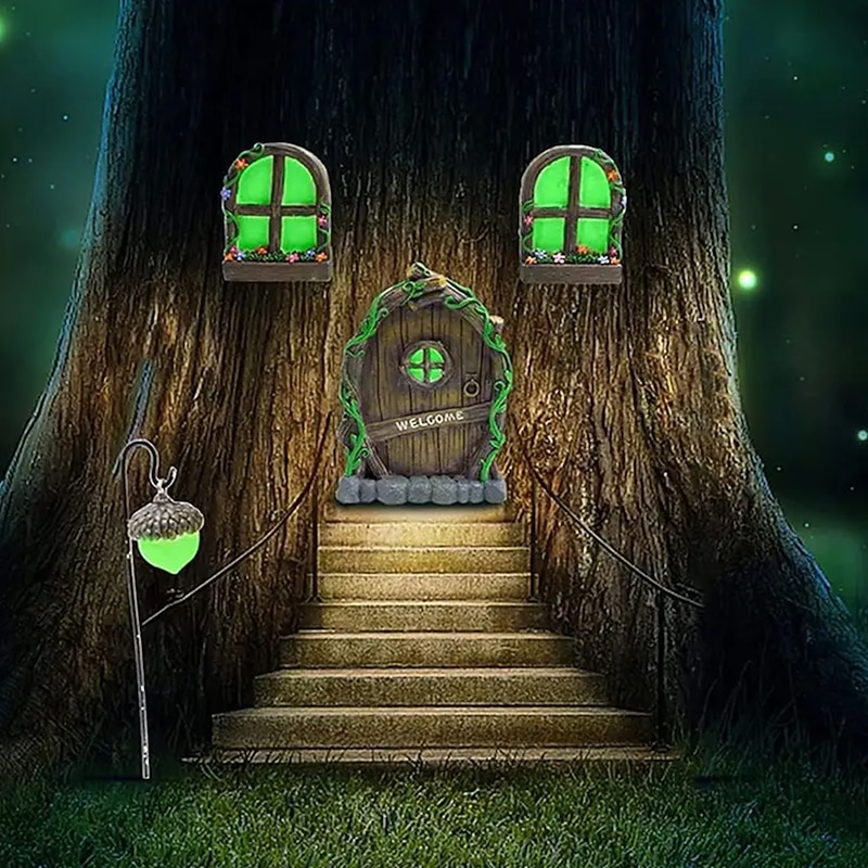 HOT ! Miniature Fairy Home Window and Door for Trees Cute Miniature Fairy Garden Cute Tree Decoration Garden Door Creative Luminous Tree Decor Fairy Door Decor Accessories for Wall and Outdoor Trees