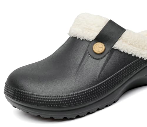 More information about Women Men Fleece Lined Clogs Winter Warm Fuzzy House Slippers Waterproof Non-Slip Garden Shoes Indoor Outdoor Mules