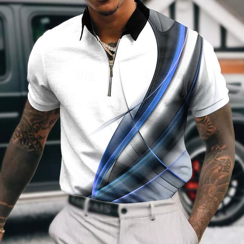 Men's Geometric Zip Polo Shirts Golf Shirt Short Sleeve Polo Shirts Collared Shirts Business Casual Vacation Wear Formal Wear Festival Wear 3D Print Quarter Zip Polo Yellow Pink Red 11