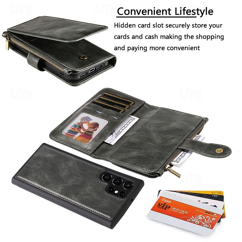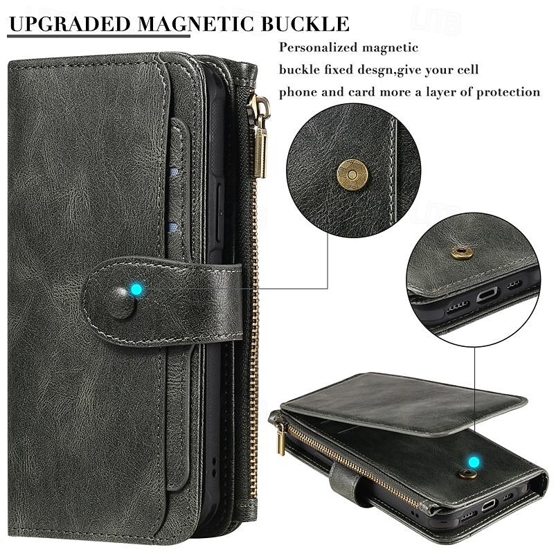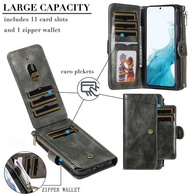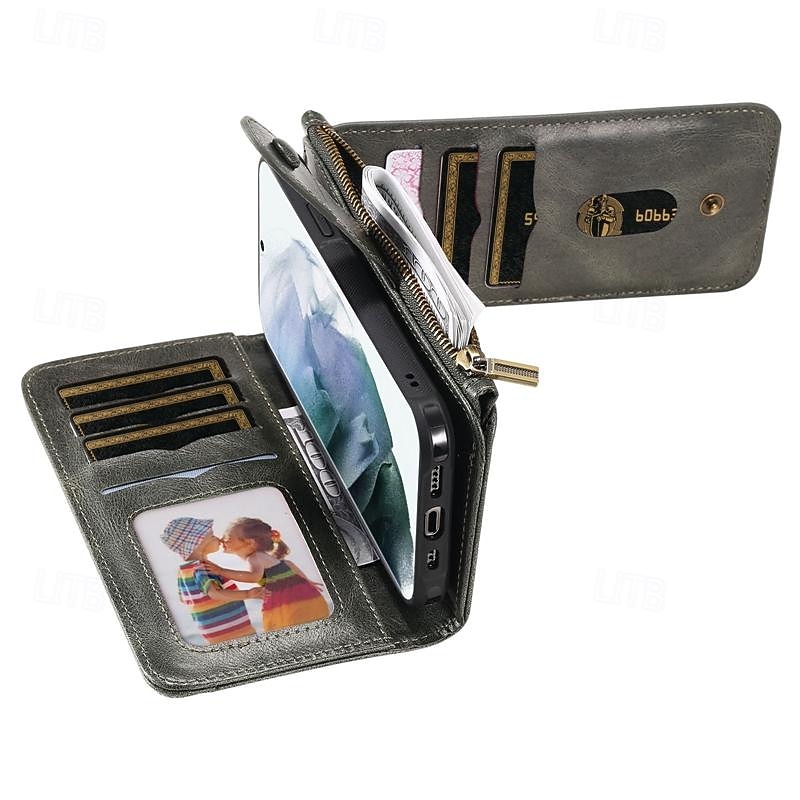 More information about Phone Case For Samsung Galaxy S25 S24 S23 S23 FE S22 S21 Ultra Plus S20 Wallet Case Detachable Magnetic Zipper Retro TPU PU Leather