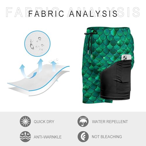 Green Fish Scales Mermaids Men's Beach Shorts with Compression Lining, Quick Dry Stretch Swimsuit 7