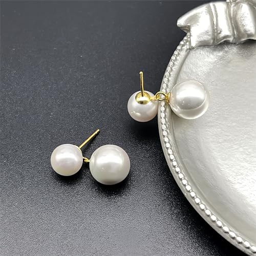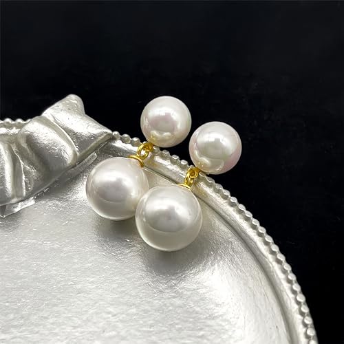 HOT ! Double Bead Pearl Earrings for Women 925 Sterling Silver Gold Big Pearl Lightweight Ball Stud Earrings Trendy Dangle Drop Earring Bridal Wedding Jewelry Birthday Christmas Gift for Her