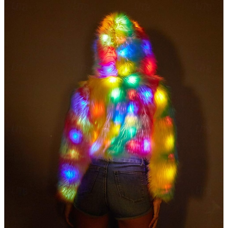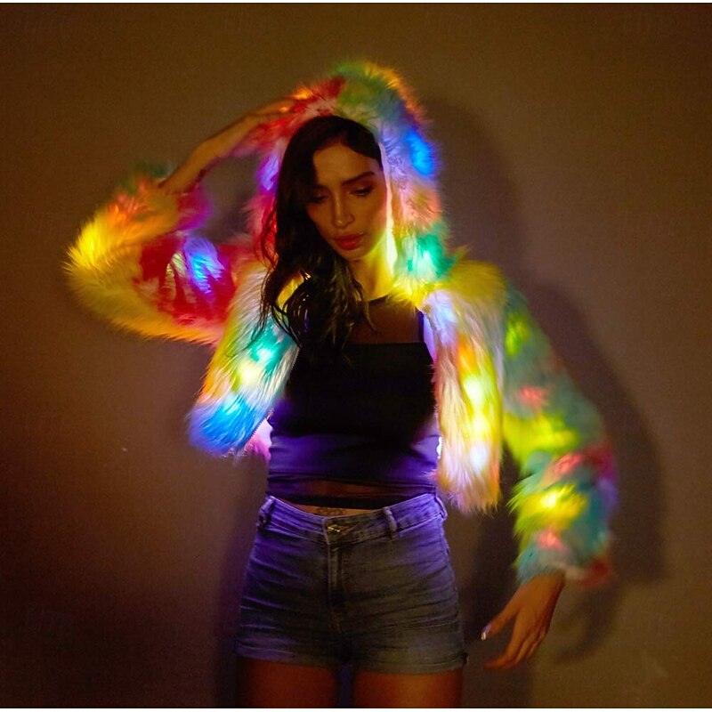 HOT ! Christmas Light Up Jacket Light Up Rave Stage Xmas Birthday Party Faux Fur Coats Costume Fancy Dress for Women Novelty Funny Adults Party Coat