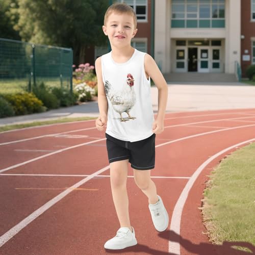 Boys Tank Top Shirts White Chicken Sleeveless T-Shirts Crew Neck for Kids Clothing Children 6