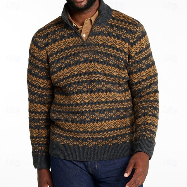 More information about Men's Graphic Geometric Fair Isle Sweater Zip Sweater Sweater Polo Zip Collar Casual Vacation Home Daily Zipper Knitting Keep Warm Long Sleeve Fall Winter Brown