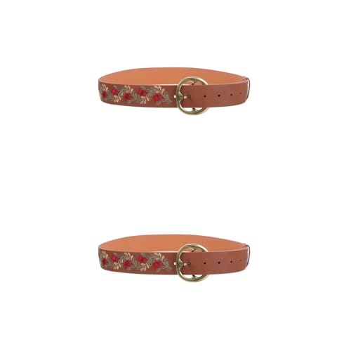 LUOZZY 2 Pcs Women Boho Embroidered Floral Waist Belt with Buckle Vintage Fashion Accessories for Dresses and Jeans 2
