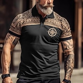 HOT ! Men's Tribal Polo Shirts Golf Shirt Short Sleeve Polo Shirts Collared Shirts Casual Vacation Wear Party Outfits Buttons 3D Print Black