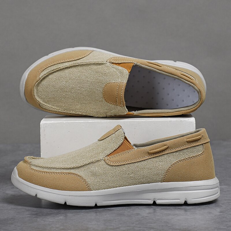 HOT ! Men's Beige Canvas Slip-On Loafers – Lightweight Breathable Casual Shoes for Daily Wear and Outdoor Activities