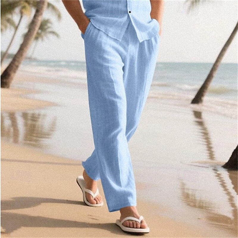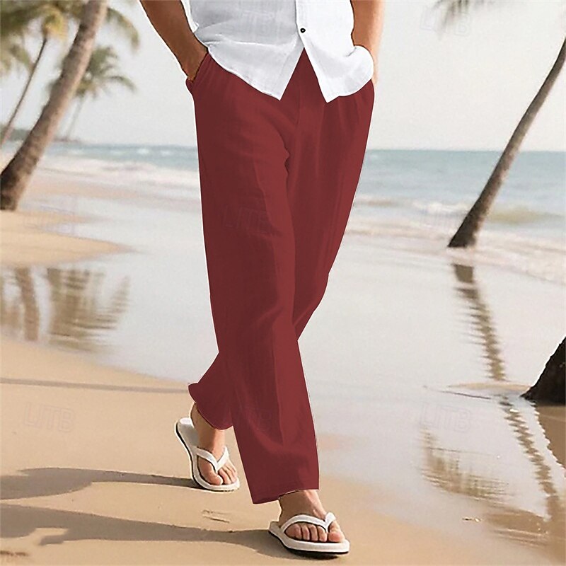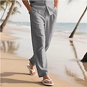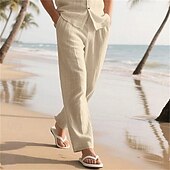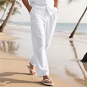 More information about Men's Linen Pants Trousers Summer Pants Baggy Pants Beach Pants Elastic Waist Drawstring Straight Leg Plain Comfort Breathable Full Length Outdoor Casual Daily Vacation Classic Style Black White