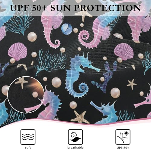 ALAZA Pearl Shell Seahorse Starfish Black Girls One Piece Swimsuit Long Sleeve Rash Guard Swimsuits UV 50+ Swimwear Zipper 7