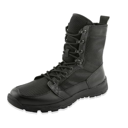 • Durable Upper: Crafted with a combination of leather and Oxford fabric, these men's military boots are highly resistant to wear and tear. This enhances breathability for all-day comfort and adds a stylish, varied look to the boots