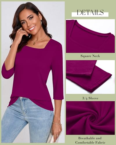 • Soft and Lightweight Material: our women's 3/4 sleeve casual shirts are made of 60% polyester, 35% rayon, 5% spandex; Soft fabric no shrinkage, breathable smooth and not see-through, this square neck loose provides you with a casual and comfortable wearing experience