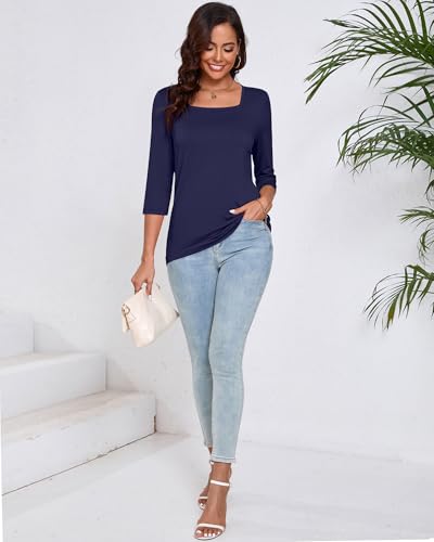 • 3/4 Sleeve Square Neck Design: the women's casual tops 3/4 sleeve design is easy to modify your arm, and make them look slimmer; In addition, square neckline show your elegant neckline and reveal delicate collarbones, the overall appearance looks stylish and comfortable