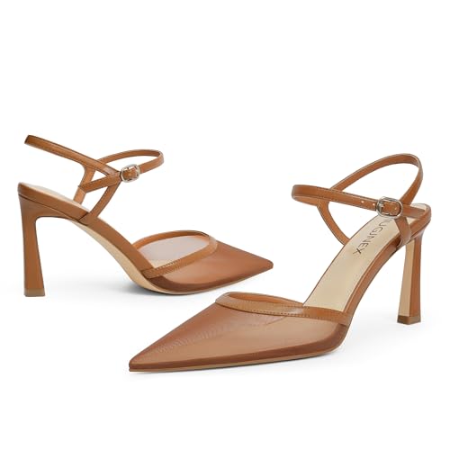 Women’s Closed Toe Heels Pointed Toe Stiletto Pumps with Ankle Strap Slingback Dressy Shoes for Wedding Party Prom 1
