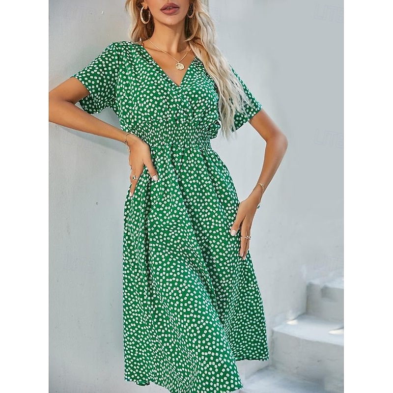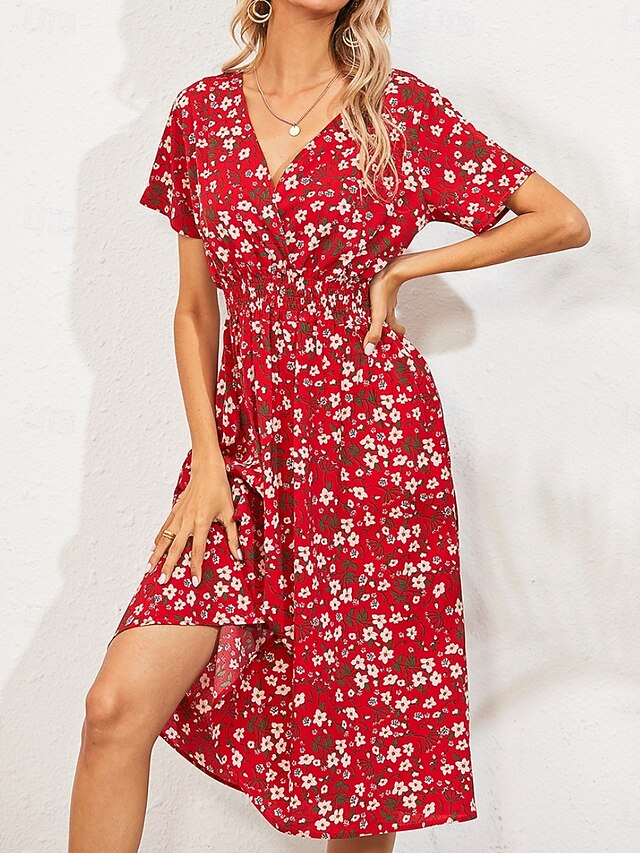 More information about Women's Midi Dress Casual Dress Swing Dress A Line Dress Stylish Casual Vacation Daily Regular Fit Floral Short Sleeve V Neck Black White Yellow Pink Summer