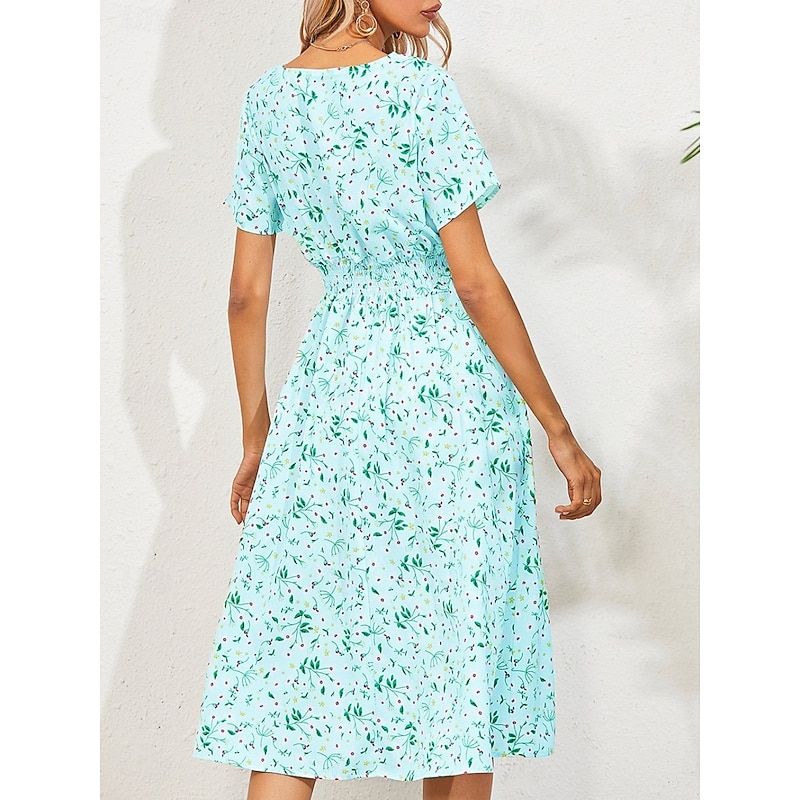 Women's Midi Dress Casual Dress Swing Dress A Line Dress Stylish Casual Vacation Daily Regular Fit Floral Short Sleeve V Neck Black White Yellow Pink Summer 25