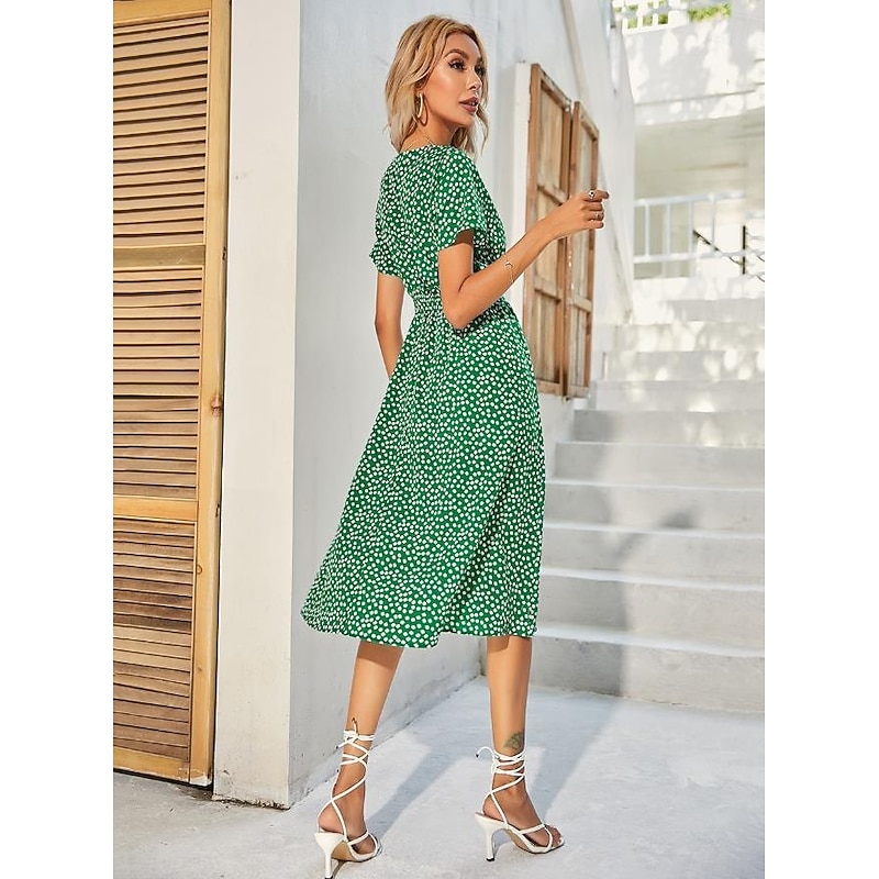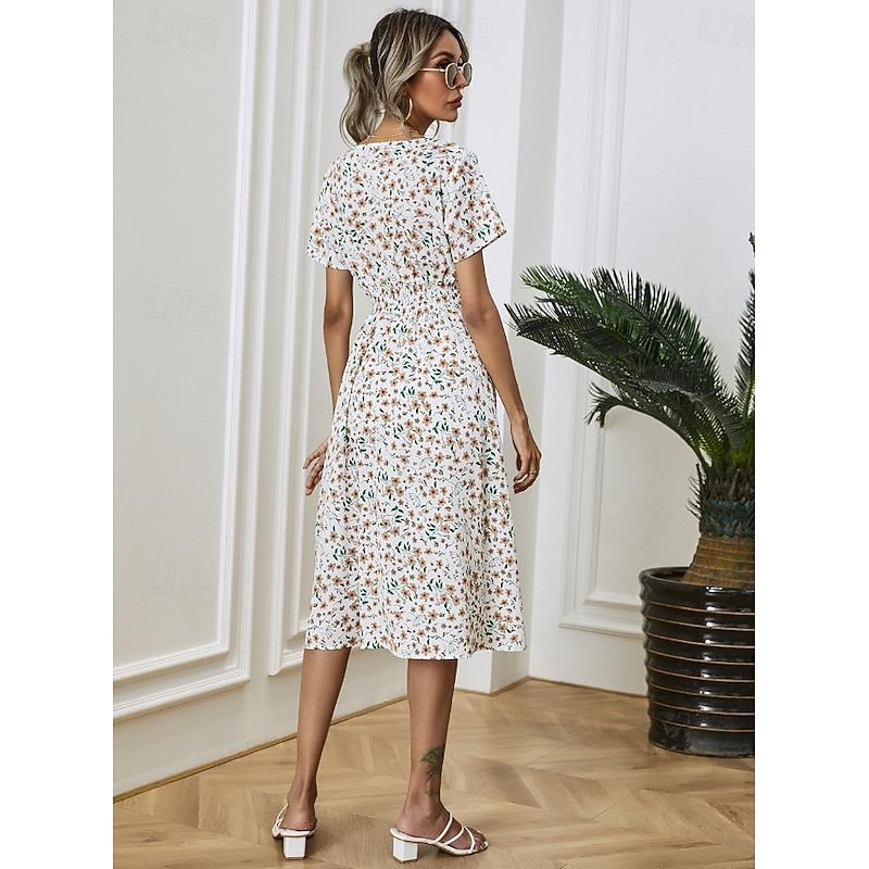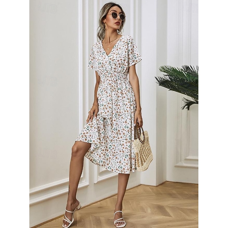 Women's Midi Dress Casual Dress Swing Dress A Line Dress Stylish Casual Vacation Daily Regular Fit Floral Short Sleeve V Neck Black White Yellow Pink Summer 14
