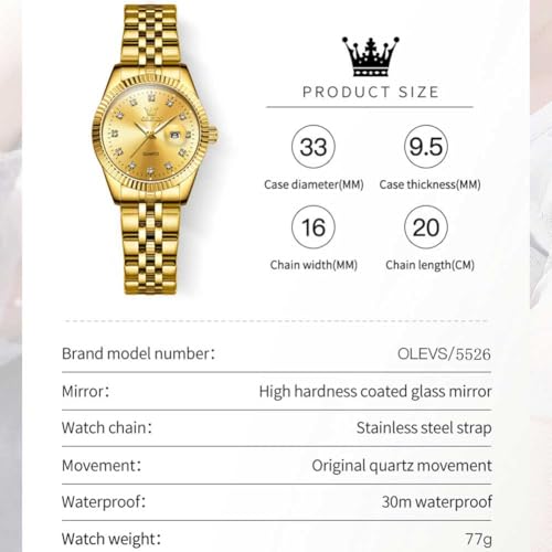 More information about OLEVS Watches for Women Diamond Luxury Dress Women Watches Analog Quartz Waterproof Day Date Stainless Steel Wristwatch