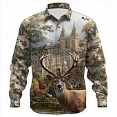 HOT ! Men's Reindeer Castle Hunting Shirt Button Up Shirt Long Sleeve Vintage Retro Outdoor Camping & Hiking Hunting Spring Fall Turndown 3D Print Collared Shirts Blue 1# Blue