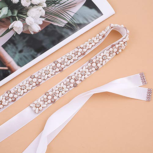 More information about Beaded Bridal Sash Pearl Crystal Wedding Belt Handmade Rhinestone Bridesmaid Belt for Women Dress Accessories