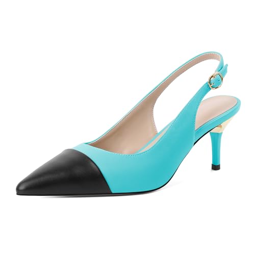 YODEKS Women's Slingback Heels Cap Toe Shoes Pointed Low Kitten Heel Pumps 2.5 Inch Two Tone Dress Shoes for Casual Party Wedding Office 1