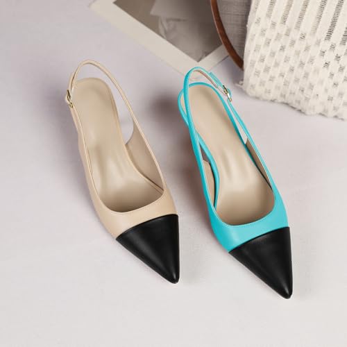 YODEKS Women's Slingback Heels Cap Toe Shoes Pointed Low Kitten Heel Pumps 2.5 Inch Two Tone Dress Shoes for Casual Party Wedding Office 6