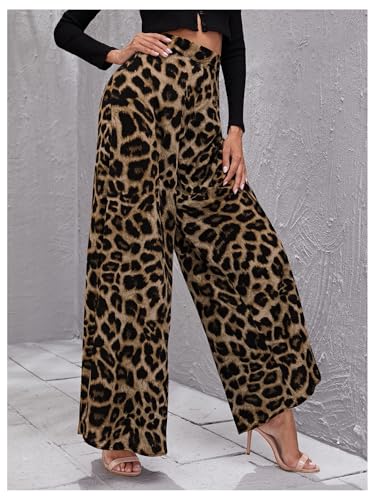 Floerns Women's Leopard Print High Waist Palazzo Pants Wide Leg Baggy Trousers 1